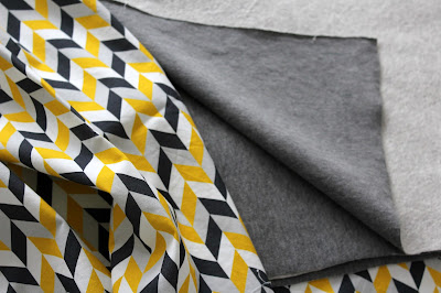 Odwracamy kocyk na prawą stronę i kładziemy na materiale (tak jak na zdjęciu poniżej). Wycinamy "trójkąt", który stanie się kapturem.